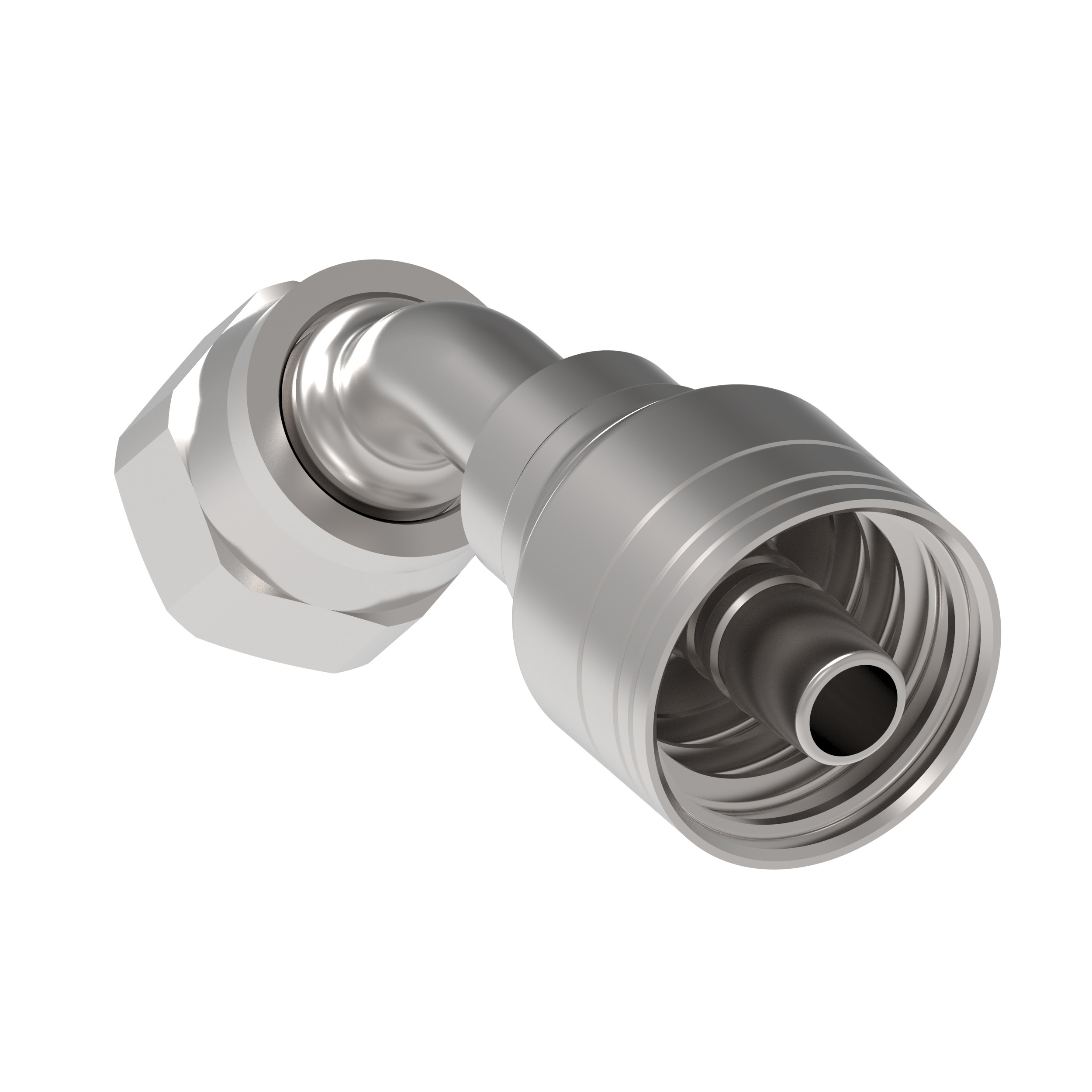 TTC 4-wire, Carbon steel crimp fitting. Features a Female 37 degree swivel end.