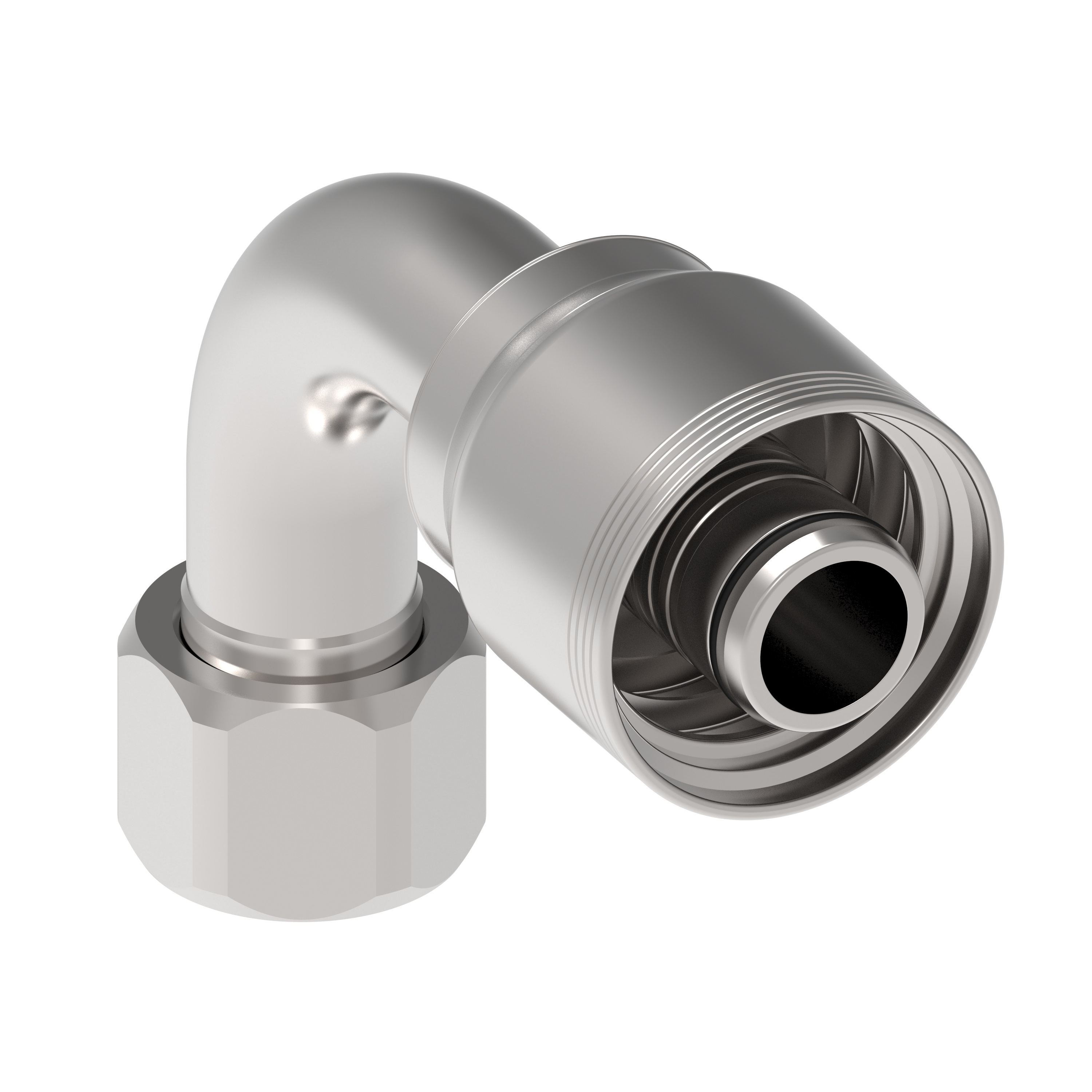 TTC 4-wire, Carbon steel crimp fitting. Features a Female 37 degree swivel end.