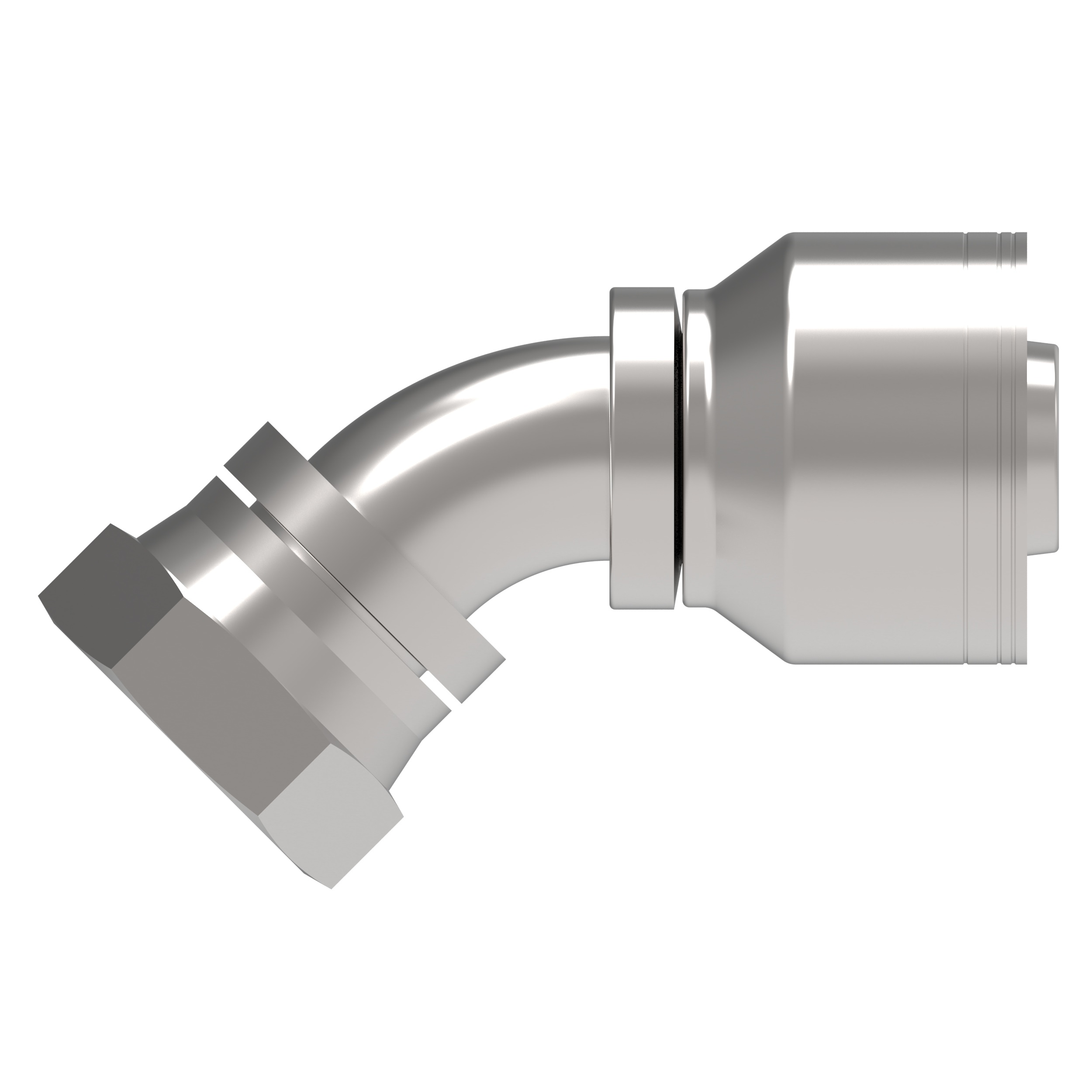 Global TTC 1 & 2-wire braid, Carbon steel crimp fitting. Features a Female 37 degree swivel end, designed for a -8 hose.