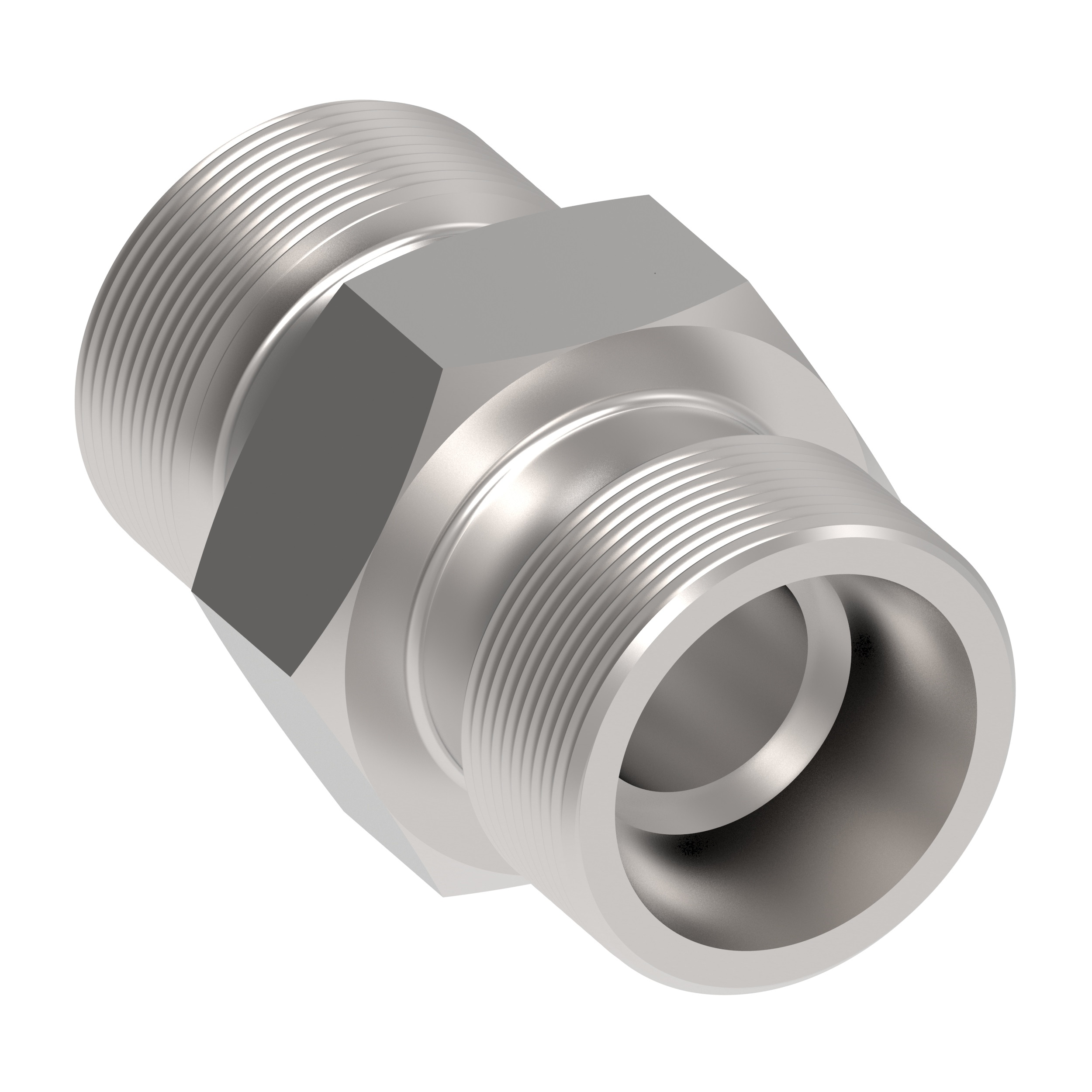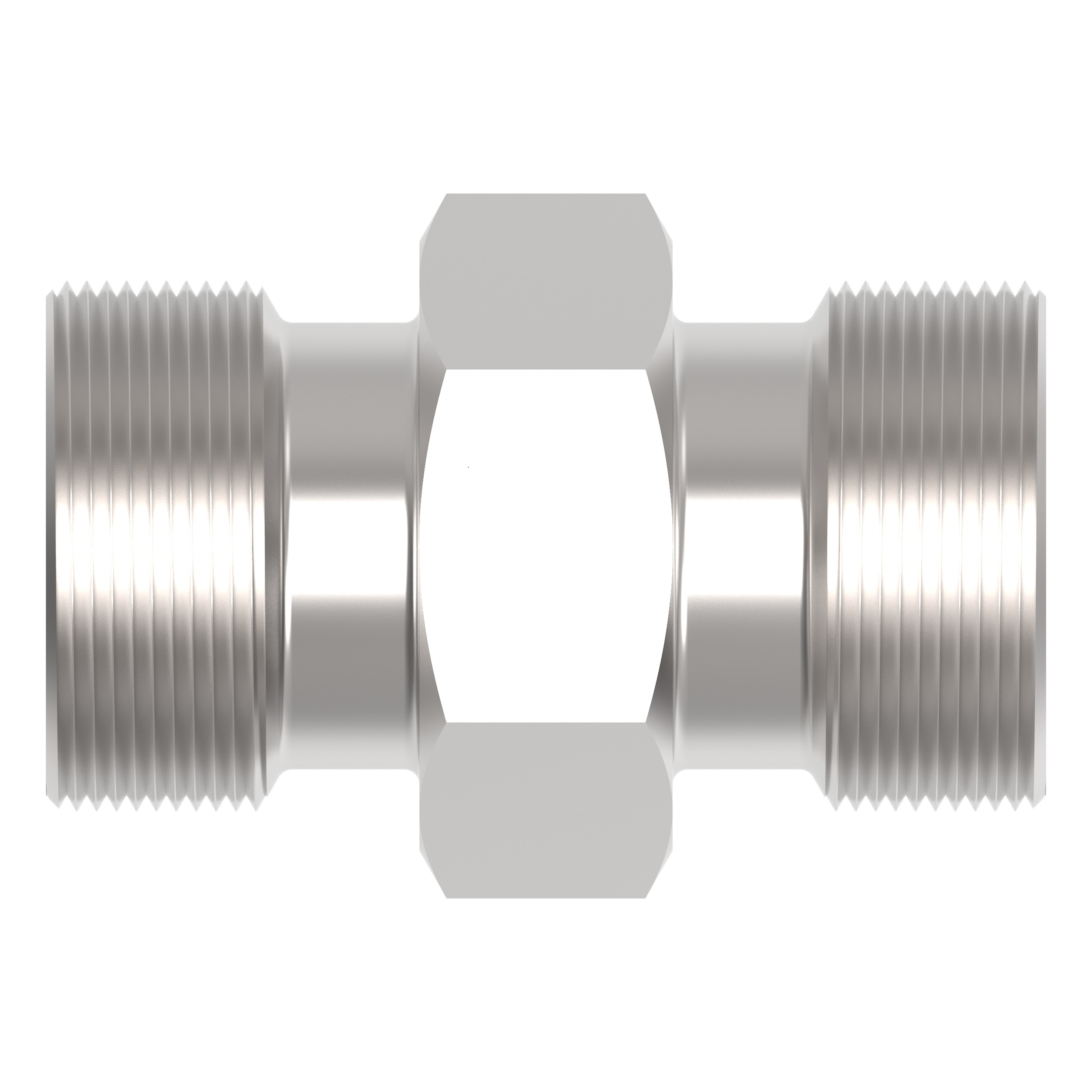 Tube to tube connector allows connection between different thread sizes, maintaining compatibility within DIN-standard hydraulic assemblies.